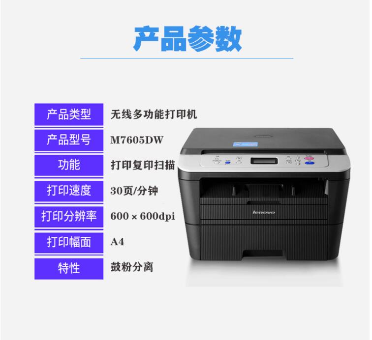 聯(lián)想M7605DW打印機M7405DWM7400W激光A4多功能一體機手機無線WIFI